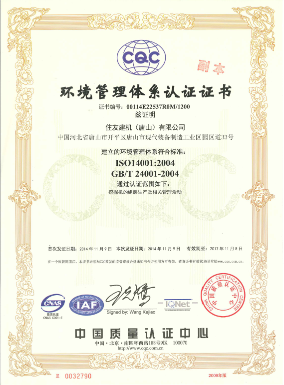 于2008年獲得中國質量認證中心的ISO9001(GB/9001)質量認證。2014年還獲得了環境保護國際標準認證ISO14001(GB/T24001)。