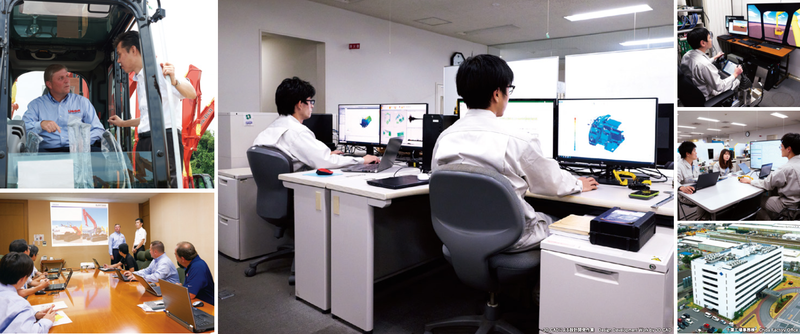 住友建機(jī)公司擁有經(jīng)驗(yàn)豐富的設(shè)計(jì)開發(fā)團(tuán)隊(duì),以及有助于機(jī)電一體化開發(fā)的新型工作站,建立了健全的設(shè)計(jì)研發(fā)體制。在千葉工廠,可以運(yùn)用可制作高精密三維立體畫面的3D-CAD及CAE軟件完成制圖及對驗(yàn)證設(shè)計(jì)及安全性能的CAE仿真模式開發(fā),可以進(jìn)一步提高產(chǎn)品的安全可靠性。