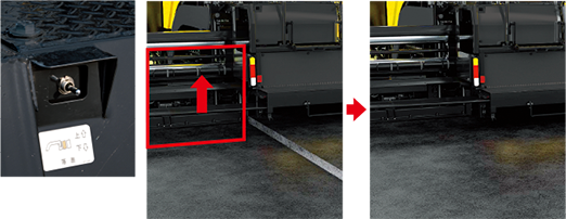熨平板采用送料整平板+夯錘+振動器組合的住友技術夯實系統。位于前方的送料整平板在對材料進行排列和預壓實的同時,把排列好的材料順暢地輸送至夯錘和振動器,從而實現高壓實度和高平坦性的高質量攤鋪。