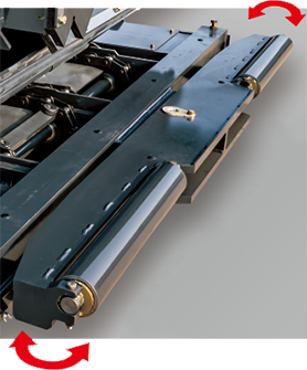 采用了搖動式推輥,提升了傾倒瀝青材料時料車與攤鋪機的接駁便利性。可前后3度移動,降低了前輪的負擔。除了在彎道時可以更為順暢的推動料車外,也可防止瀝青材料的溢出。