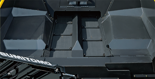使用頻度高的需點檢部件都集中設置在機器側邊,點檢保養更便捷,能夠更好的對機器進行日常管理。另外,料斗內也設有踏板,便于進行發動機室內的保養。保險絲盒設置在座椅下方。