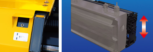 行走馬達安裝在左右行走輪的內(nèi)部,直接實施驅(qū)動。使平行駕駛4輪驅(qū)動發(fā)揮了顯著的效果,實現(xiàn)了流暢的起步和停止。