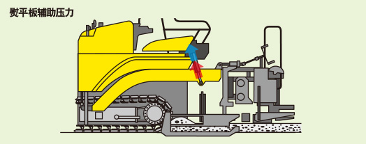 攤鋪較厚面層時,提升油缸可以利用背壓輔助熨平板提升。