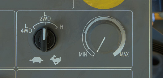 - ●低速4WD(1.0~12m/min)適合攤鋪速度的模式,4輪同時驅(qū)動發(fā)揮牽引力。