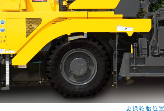 更換輪胎時將熨平板油缸和調(diào)平油缸提升到最大高度,即可更換。