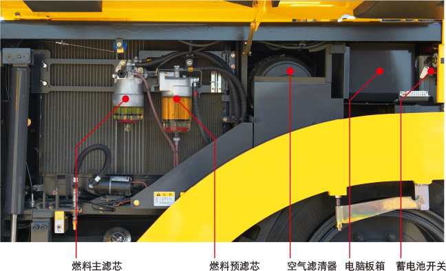 為了方便檢查油婁油脂,交換濾芯婁以及其他日常保養(yǎng),需定期保養(yǎng)的部件都設(shè)置在便于作業(yè)的位置。整機兩側(cè)采用開放式邊門。