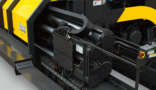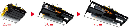 杰平霸采用三連式無級伸縮熨平板,可以伸縮自如。除了應(yīng)對多種攤鋪寬度之外,施工中的攤鋪寬度變更也平穩(wěn)順暢。另外使用延長熨平板時最大攤鋪寬度可達9m,可實現(xiàn)高效率的現(xiàn)場作業(yè)。