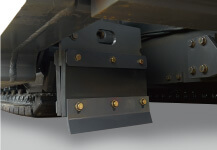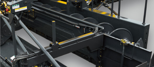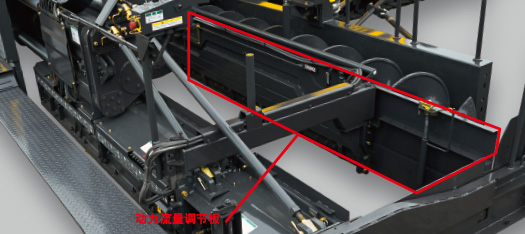 與后部熨平板連接的伸縮式流量調(diào)節(jié)板除了標(biāo)準(zhǔn)的手動型之外,還新設(shè)置了液壓式的選購件。外側(cè)使用液壓調(diào)整樣式,可以自如地調(diào)節(jié)合適的拌合料流量,實現(xiàn)拌合料向末端的順暢輸送。