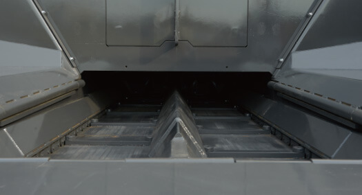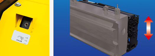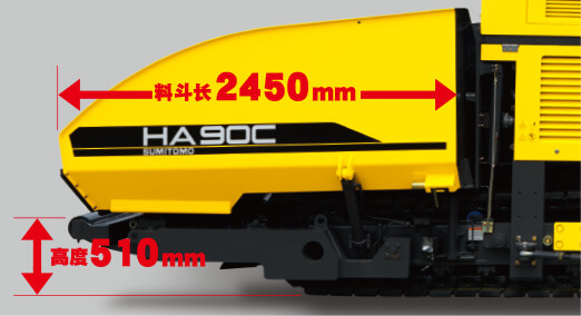 新型料斗因更加貼近地面及料斗延長200mm,容量進一步增大,使用合材大幅度便利化。因功能性正面形狀及寬幅傳送帶開口部抑制合材滯留,合材的導(dǎo)入將更加順暢,在講究速度的施工現(xiàn)場也可以從容應(yīng)對。