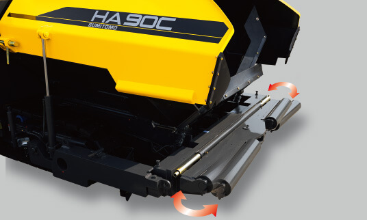 HA90C本體可與6m寬度的熨平板組合使用,與通常的6m(HA60C)攤鋪機相比,因功率強大且得心應(yīng)手,現(xiàn)場難做的作業(yè)也能夠快速完成。