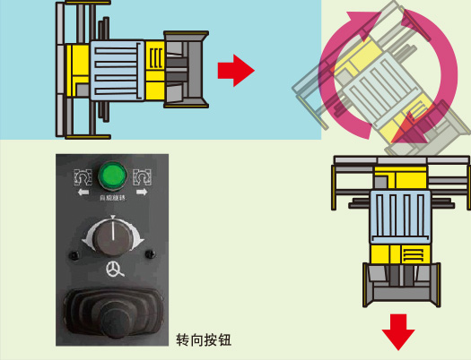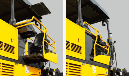 配備了轉(zhuǎn)向操作裝置,在狹窄的工地能夠輕松的施工。既使攤鋪到工地盡頭也可以從側(cè)面出來,大大提高了工作效率。