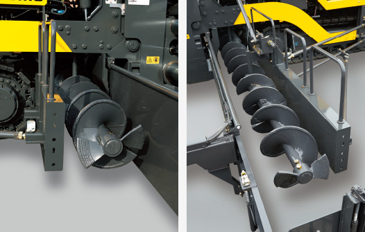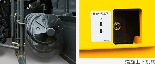 根據(jù)攤鋪厚度可以調(diào)節(jié)螺旋葉片的高度。(從地面算起可調(diào)節(jié)的范圍:115mm-265mm )