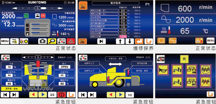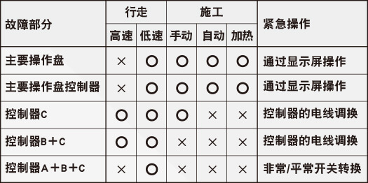 本設(shè)備設(shè)定許多緊急對應(yīng)系統(tǒng)。攤鋪施工出現(xiàn)故障時,采用各種對應(yīng)措施能使機械繼續(xù)作業(yè)或離開工地。