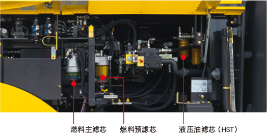 為了便于檢查油品,更換濾芯以及其他日常保養(yǎng),需定期保養(yǎng)的部件都設(shè)置在便于作業(yè)的位置。整機兩側(cè)采用開放式邊門。