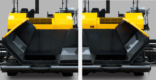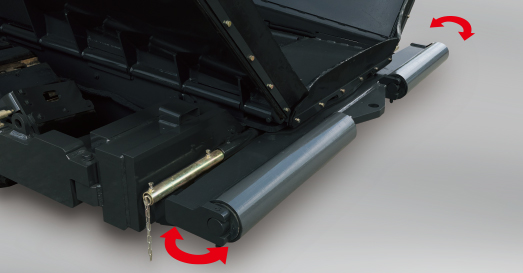 標(biāo)配有運輸時可以收回的250mm的擋板。可防止瀝青材料卷入履帶板或者行走馬達(dá)內(nèi),提高了可靠性。