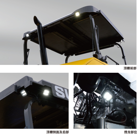 機(jī)器上各個部位的作業(yè)燈均采用了明亮且壽命長的LED燈。進(jìn)一步提升了夜間作業(yè)的安全性和舒適性。