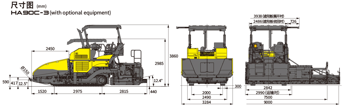 HA90C-3的熨平板在裝有側(cè)板的狀態(tài)下,其運輸寬度也在3米內(nèi),提高了運輸便利性,可以靈活應(yīng)對轉(zhuǎn)場要求。