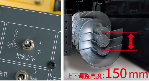 可以根據(jù)施工時的攤鋪厚度,通過攪龍高度調(diào)整開關(guān)方便快捷地調(diào)整攪龍高度。