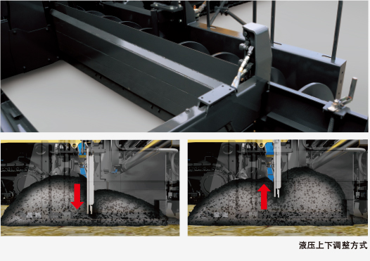 采用的是能夠方便快速調(diào)節(jié)落差的一鍵落差調(diào)節(jié)開關(guān)裝置。可以控制由于攤鋪厚度變化而導(dǎo)致出現(xiàn)的落差,從而實現(xiàn)均勻攤鋪。即使是攤鋪厚度急劇地發(fā)生變化,也可以通過落差開關(guān)方便快速地進(jìn)行落差調(diào)節(jié),確保攤鋪效果。