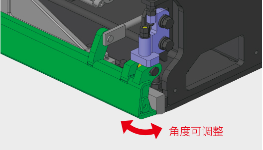 熨平板的進(jìn)料高度(送料整平板角度)的調(diào)整由之前的墊片調(diào)整變更為內(nèi)部調(diào)整的方式。無論是從熨平板后方還是從側(cè)面都可以很方便地對進(jìn)料高度進(jìn)行調(diào)整,從而可以完美地對應(yīng)大顆粒或厚層攤鋪等各種施工。