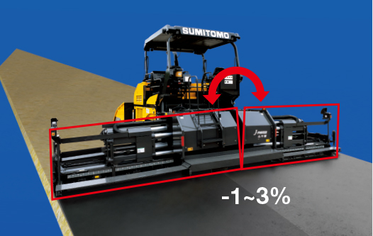 世界首創(chuàng)!搭載有住友獨家的J.PAVER杰平霸采用獨家技術(shù)(三聯(lián)伸縮式熨平板)同時實現(xiàn)了流暢的攤鋪寬幅調(diào)整以及高剛性,實現(xiàn)了高品質(zhì)攤鋪。
