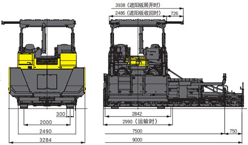 | 攤鋪能力 | 攤鋪寬度 | 2.8~7.5m(無級伸縮) 最大9.0m(加裝熨平板) | |||