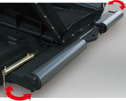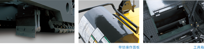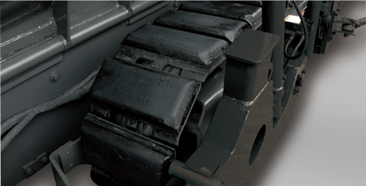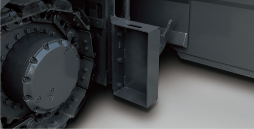 標(biāo)配有運輸時可以收回的250mm的擋板。可防止瀝青材料卷入履帶板或者行走馬達(dá)內(nèi),提高了可靠性。