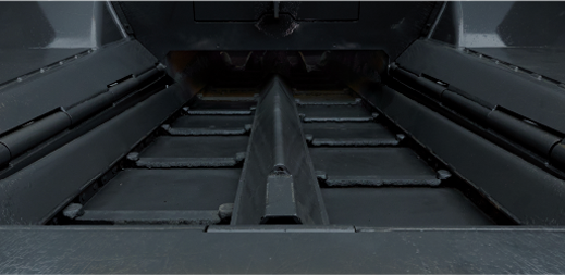 輸料帶底板采用了新材質(zhì)耐磨鋼。在確保優(yōu)秀的強度的同時進一步提升了可靠性。為防止因碎石卡入而導(dǎo)致輸料帶鏈條斷裂,標(biāo)配有輸料帶逆轉(zhuǎn)開關(guān)。