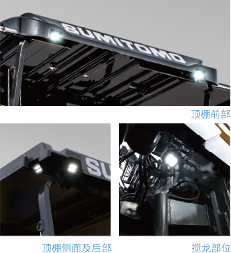 機器上各個部位的作業(yè)燈均采用了亮度高且壽命長的LED燈。進一步提升了夜間作業(yè)的安全性和舒適性。