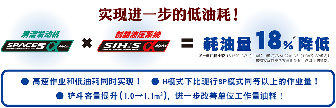 住友建機(jī)的特制液壓系統(tǒng)“SIH:S α”同時(shí)兼顧工作效率和出色的耗油性能。而且追求對現(xiàn)場和環(huán)境的更加友好。