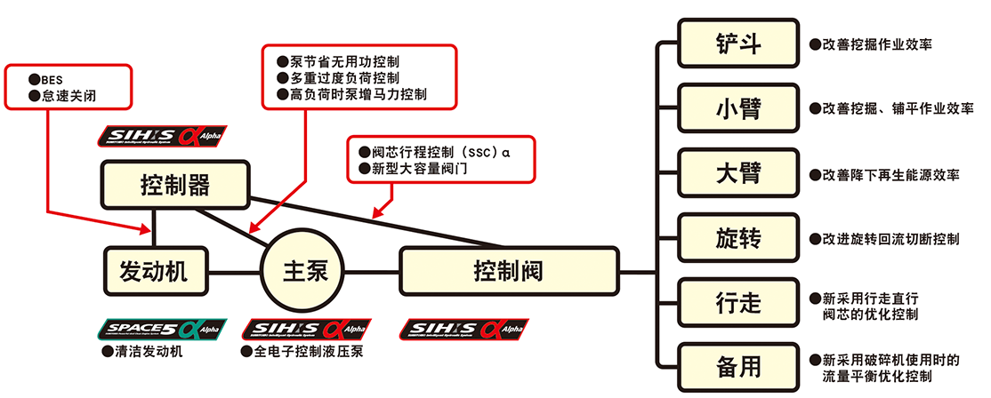 閥芯行程控制(SSC)α能根據(jù)使用者的作業(yè)狀況實(shí)現(xiàn)出色且準(zhǔn)確的流量調(diào)整。速度、動力、操作性等均能隨心而動,作業(yè)效率得到飛躍性的提升。采用范圍也進(jìn)一步擴(kuò)大,作業(yè)判別更加高精度化。同時(shí)追求進(jìn)一步的節(jié)能和順暢的作業(yè)性。