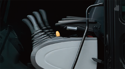 扶手與傾斜式控制臺的動作聯動。無論控制臺的角度如何,扶手和操作桿的距離保持不變,可以進行更舒適的操作。