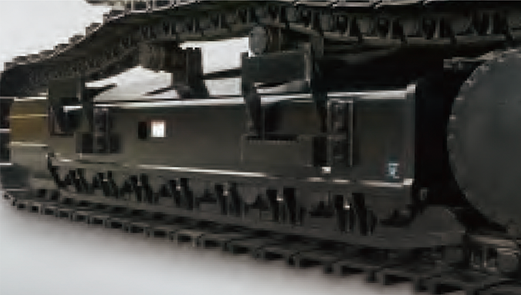 底盤標(biāo)準(zhǔn)裝備對(duì)防止履帶脫落和輥保護(hù)發(fā)揮作用的全軌護(hù)板。在嚴(yán)酷的作業(yè)現(xiàn)場實(shí)現(xiàn)進(jìn)一步的耐久性。