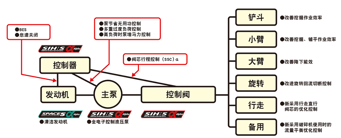 閥芯行程控制(SSC)α能根據(jù)使用者的作業(yè)狀況實(shí)現(xiàn)出色 且準(zhǔn)確的流量調(diào)整。速度、動(dòng)力、操作性等均能隨心而動(dòng),作業(yè)效率得到飛躍性的提升。采用范圍也進(jìn)一步擴(kuò)大,作業(yè)判別更加高精度化。同時(shí)追求進(jìn)一步的節(jié)能和順暢的作業(yè)性。
