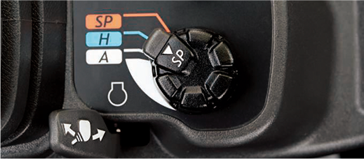 搭載有作業(yè)速度優(yōu)先的SP(Super Power),適用于負(fù)重作業(yè)的H(Heavy),對(duì)應(yīng)廣泛作業(yè)的省油耗A(Auto)這3種作業(yè)模式。另外,A模式分為6個(gè)等級(jí),實(shí)現(xiàn)了更適合現(xiàn)場的模式選擇。
