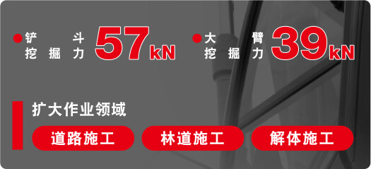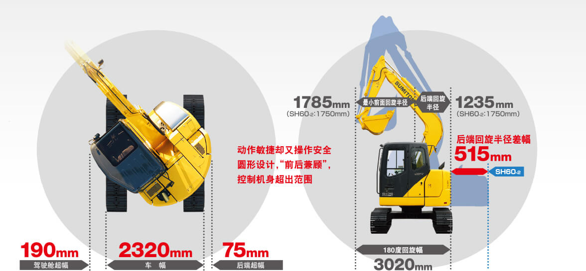 超小回旋范圍,并兼具高度安定性,強(qiáng)勁的挖掘力及行走驅(qū)動(dòng)力。能應(yīng)對(duì)各種施工現(xiàn)場(chǎng)的要求,實(shí)現(xiàn)人機(jī)一體的精神操作性。