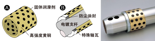 • A軸瓦的設(shè)計(jì)采用了在高強(qiáng)度黃銅中填入固體潤滑劑,在軸瓦表面形成膜,防止金屬間的接觸。可保持優(yōu)良的潤滑狀態(tài),減少連接部的摩擦。